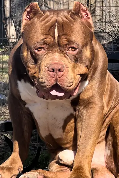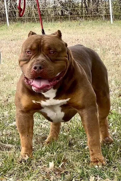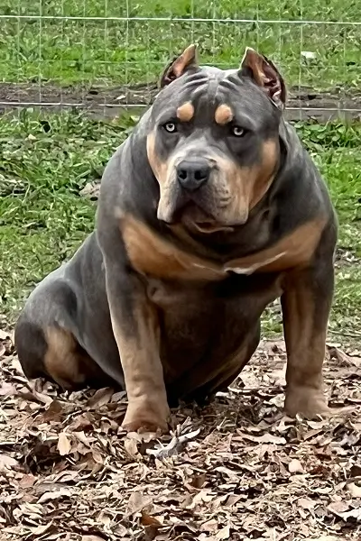 SMOOTH CRIMINAL nicknamed JUJU after his famous grandfather, JUMANJI is such an impressive dog. The size of his muscles on his short thick frame leave you awestruck! He’s always so happy, and gets along well with others. He is a light chocolate tri and changes colors throughout the year.